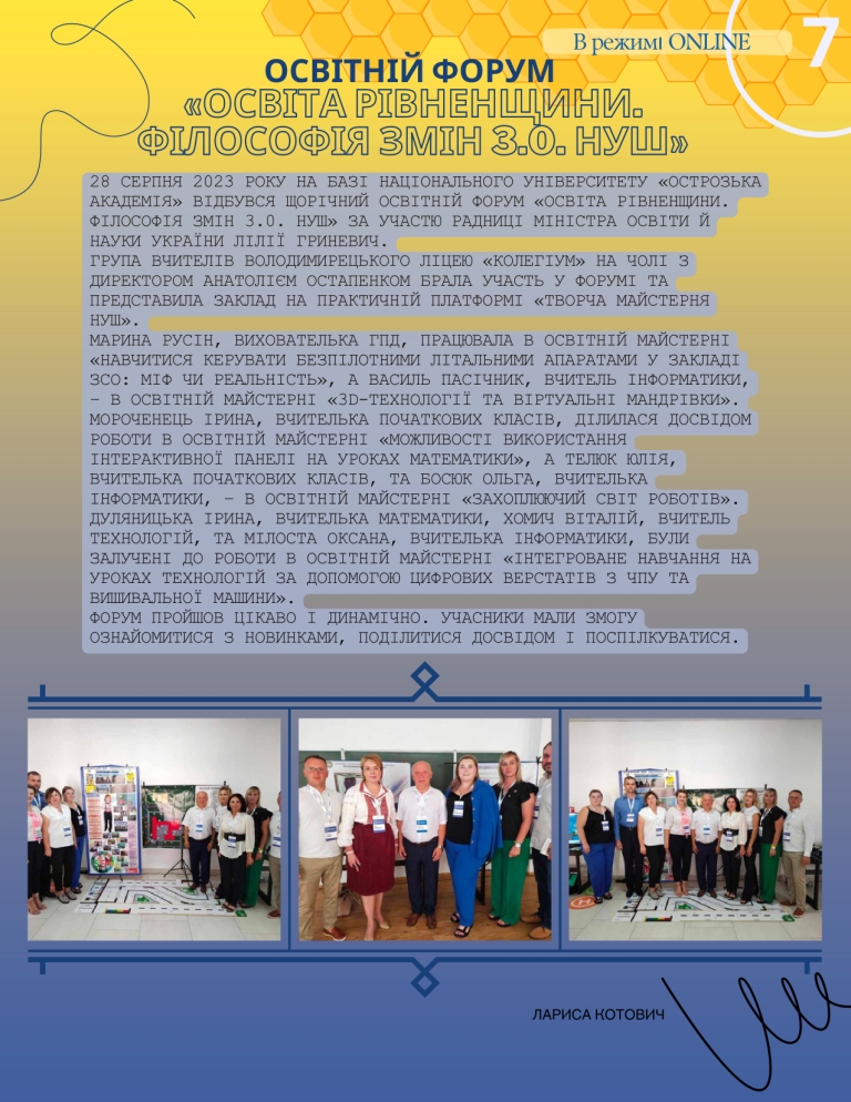 Професійний візит та практикум для вчителів технологічної освітньої галузі у Володимирецькому ліцеї «Колегіум»
