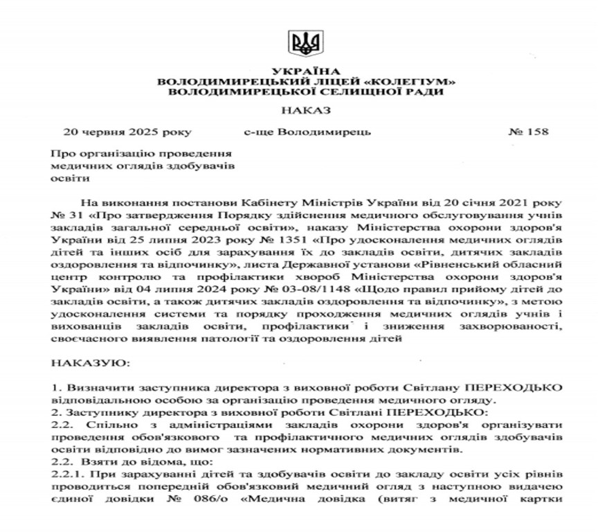 Положення щодо унеможливлення насильства та жорстокого поводження з дітьми у Володимирецькому ліцеї "Колегіум"