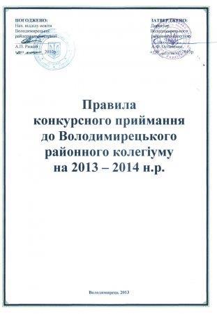 23 липня 2013 року відбулися вступні випробування в рамках основного конкурсного приймання учнів до Володимирецького районного колегіуму на 2013-2014 н.р. на такі профілі: