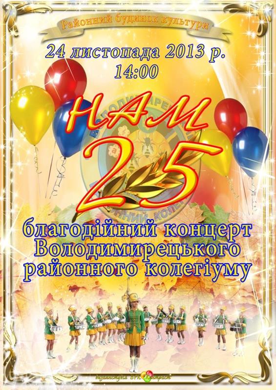 24 листопада 2013 року о 14:00 год. в Районному будинку культури відбудеться благодійний концерт "Нам 25".