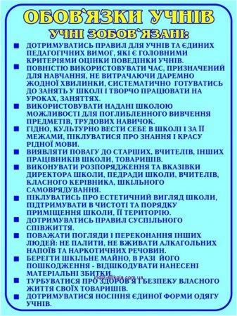 Учні зобов’язані:- оволодівати знаннями, вміннями, практичними навичками, підвищувати загальнокультурний рівень;