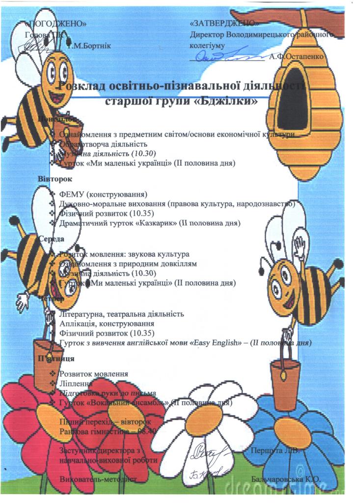 Розклад освітньо - пізнавальної діяльності