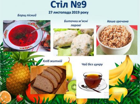 Дієтичне меню Стіл №9 на 27 листопада 2019 року