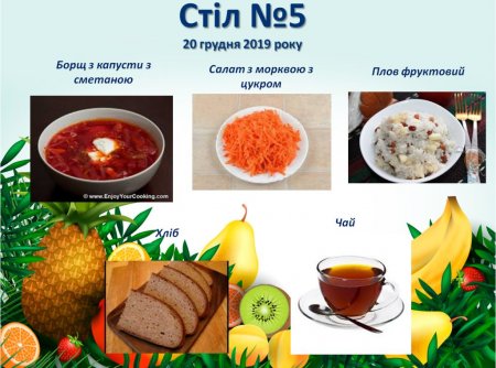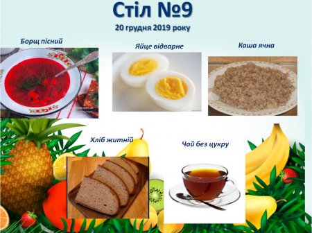 Дієтичне меню Стіл №5 і Стіл №9 на 20 грудня 2019 року