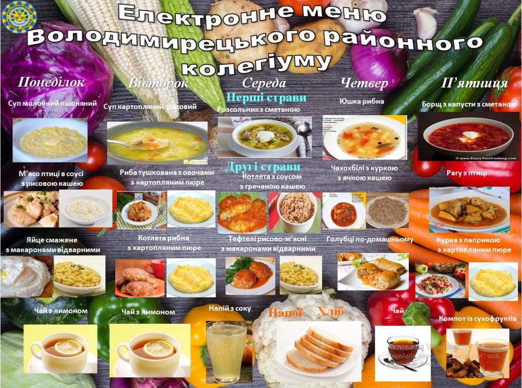 Дієтичне меню Стіл №5  і Стіл №9 на 10 грудня 2019 року