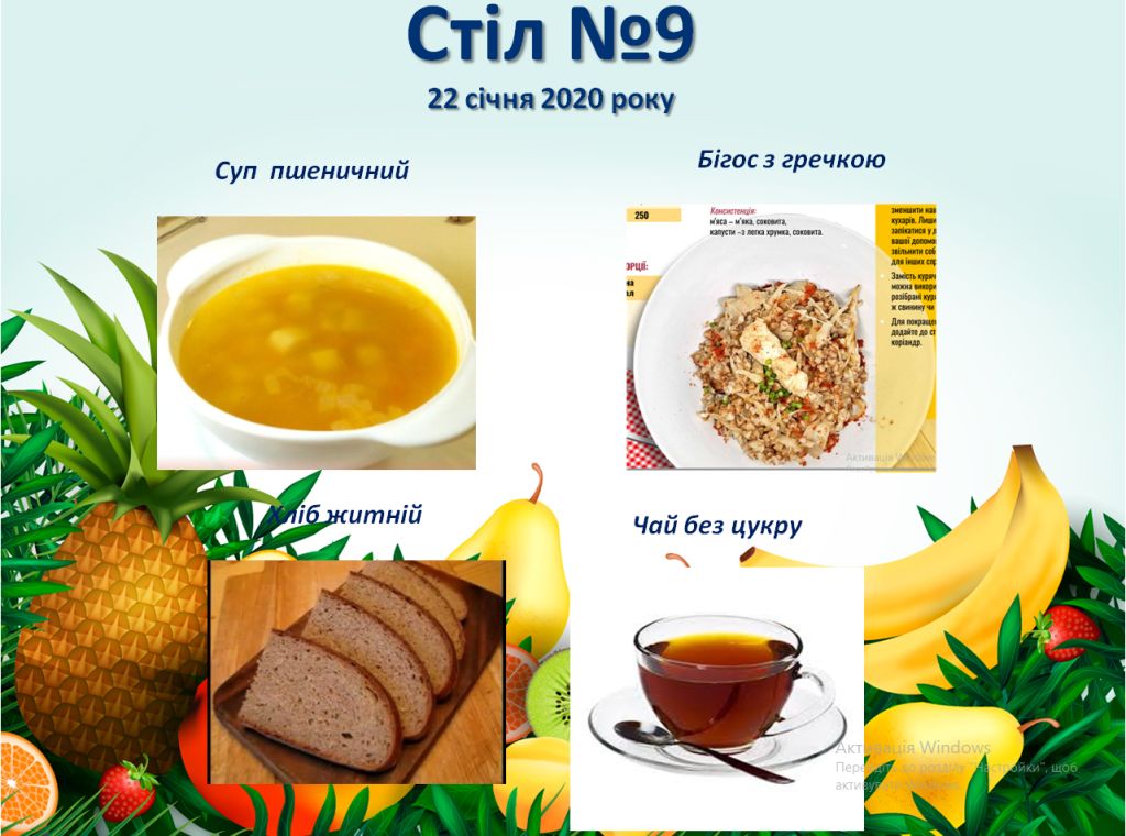 Дієтичне меню Стіл №5  і Стіл №9 на 22 січня 2020 року