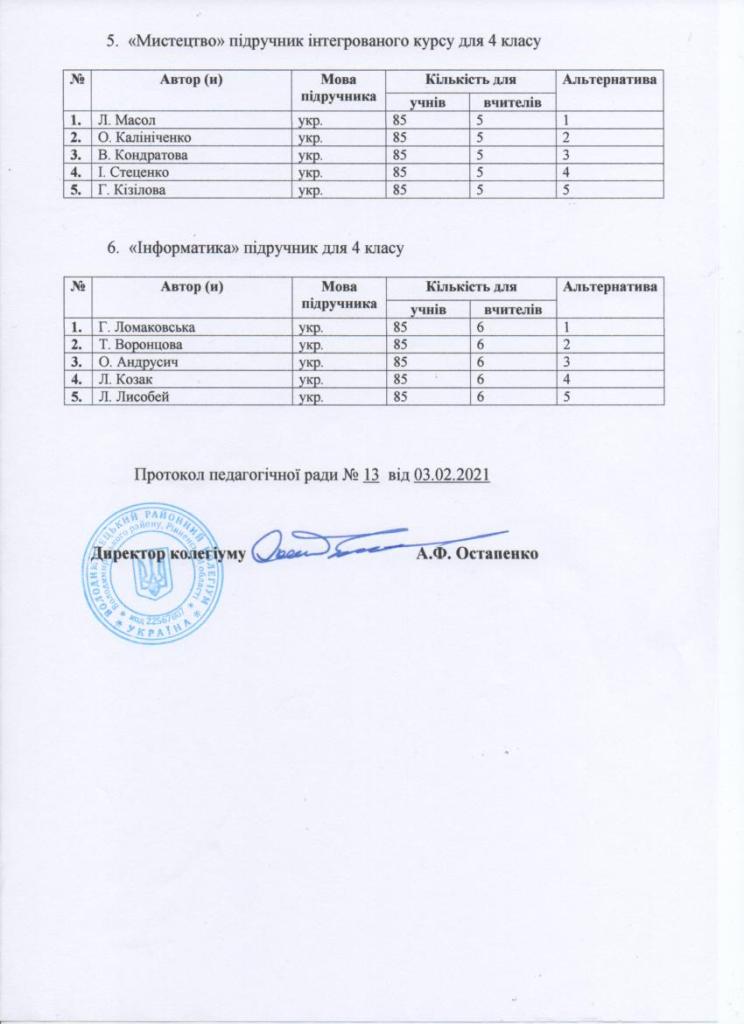 Вибір підручників для 4-го класу на 2021-2022 н.р.