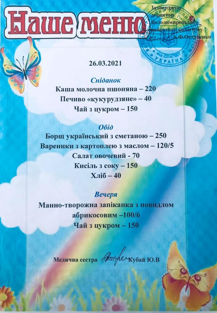 колегіум працює за раніше встановленим режимом роботи у дві зміни (І зміна – 1-2, 8-11 класи, ІІ зміна – 3-7 класи ) з дотриманням всіх встановлених протиепідеміологічних заходів.