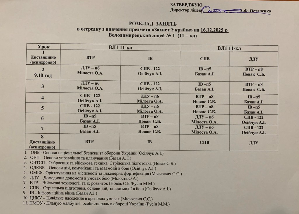 відбулася нарада при директорові з питань організованого та успішного завершення І семестру 2025-2026 навчального року, організації моніторингового дослідження учасників освітнього процесу, проведення інструктажів з техніки безпеки.