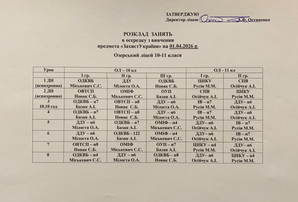 Розклад занять на 01.04.2026 року