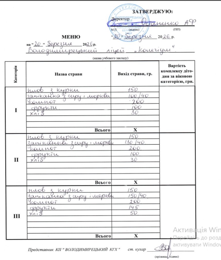Меню на 20.03.2026