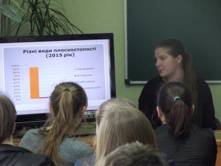 Призери ІІІ етапу Всеукраїнського конкурсу захисту робіт МАН, учні 11-Б класу Циплінська Дарина і Касянчик Діана, провели цікаву та змістовну виховну годину для учнів 7-10 класів: « Корекція та профілактика вад опорно-рухової системи учнів Володимирецького районного колегіуму, зокрема постави».