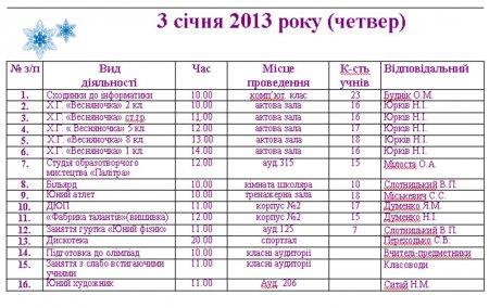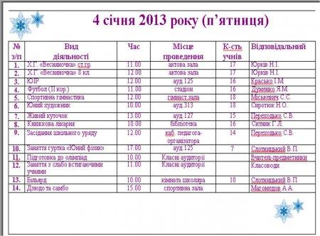 План роботи Володимирецького районного колегіуму на зимові канікули 2012-2013 н.р.