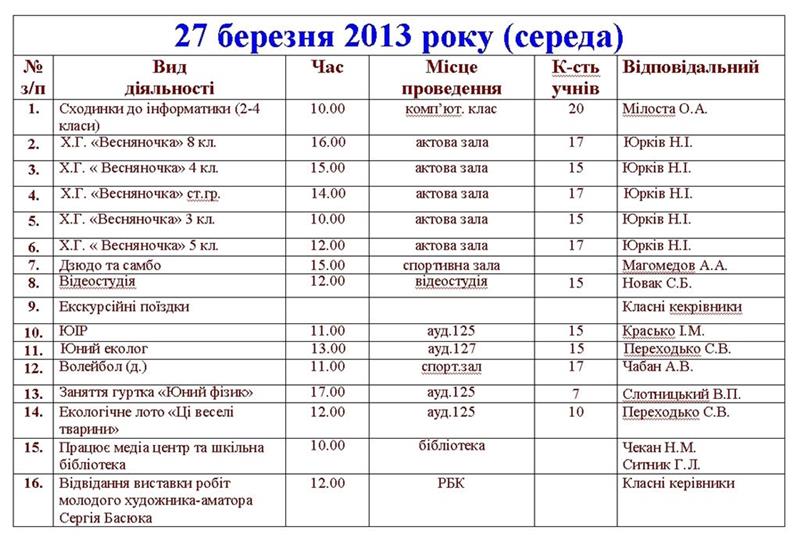 План роботи Володимирецького районного колегіуму на весняні канікули 2012-2013н.р.