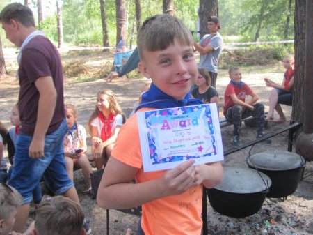 Шостий день роботи табору був завершальним для учнів І зміни (6-9 класів). Волонтери підготували для учнів сюрприз у вигляді паперової кулі"Піньята" з цукерками, яку діти із закритими очима розбивали палецею. Дійство було веселе, кумедне і сподобалося учням. А ще діти отримали від волонтерів сертифікати.