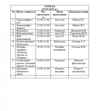 План заходів, спрямованих на запобігання та протидію булінгу (цькуванню) в закладі освіти