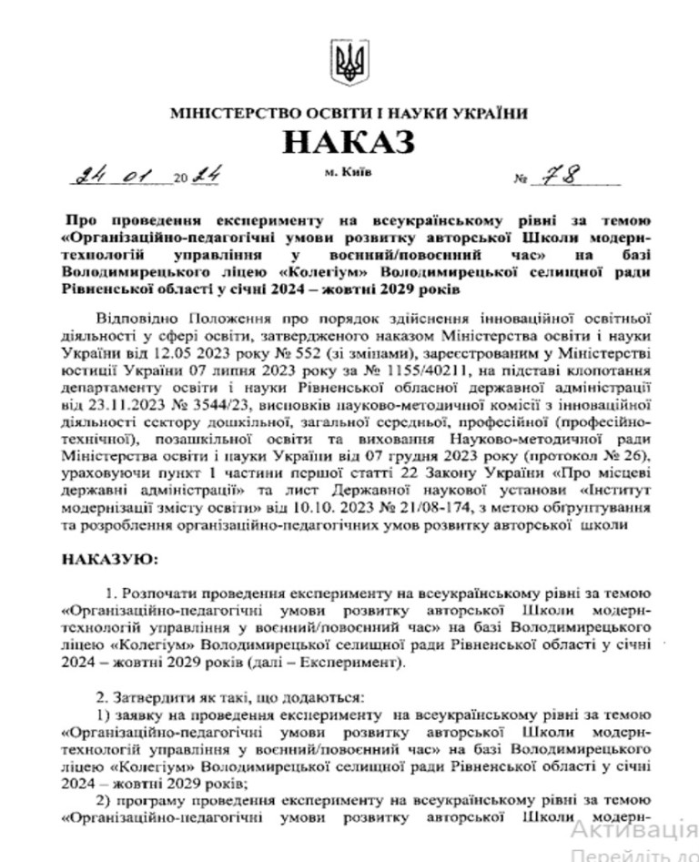 Реалізація експериментального проєкту щодо посилення безпеки освітнього середовища в закладах загальної середньої освіти в умовах правового режиму воєнного стану