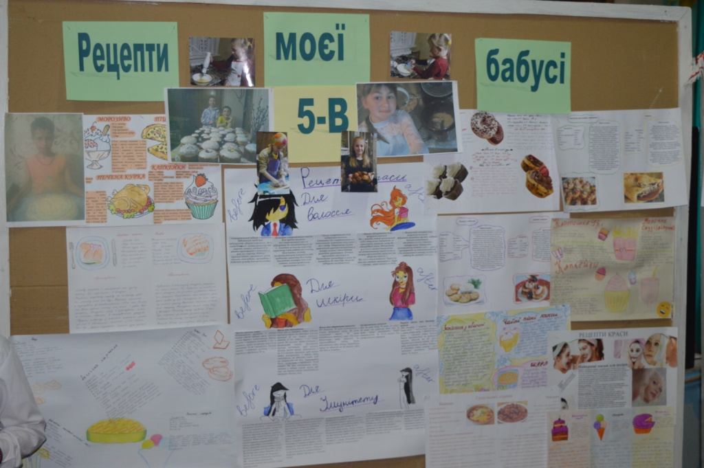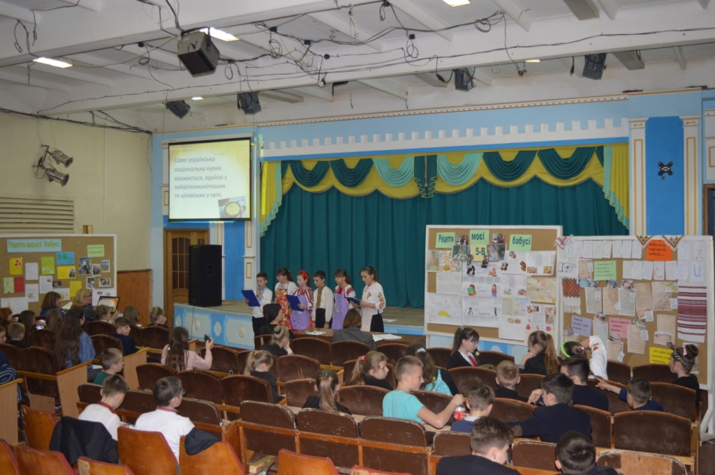 Діти 5-их класів поділилися різними рецептами та розповіли як вони вчилися куховаренню у своїх бабусь та мам, познайомили присутніх з рецептами краси та пригостили учасників смачними канапками. За оцінкою журі найкраще свою роботу захистили учні 5-А класу (класний керівник Ошурко Т.О., староста класу – Бачинський Анатолій) та 5-В класу (класний керівник Бзіта Т.С., староста класу – Чугай Марія). Друге місце посіли учні 5-Б класу (класний керівник Рижа Н.С., староста класу – Шершень Ангеліна).