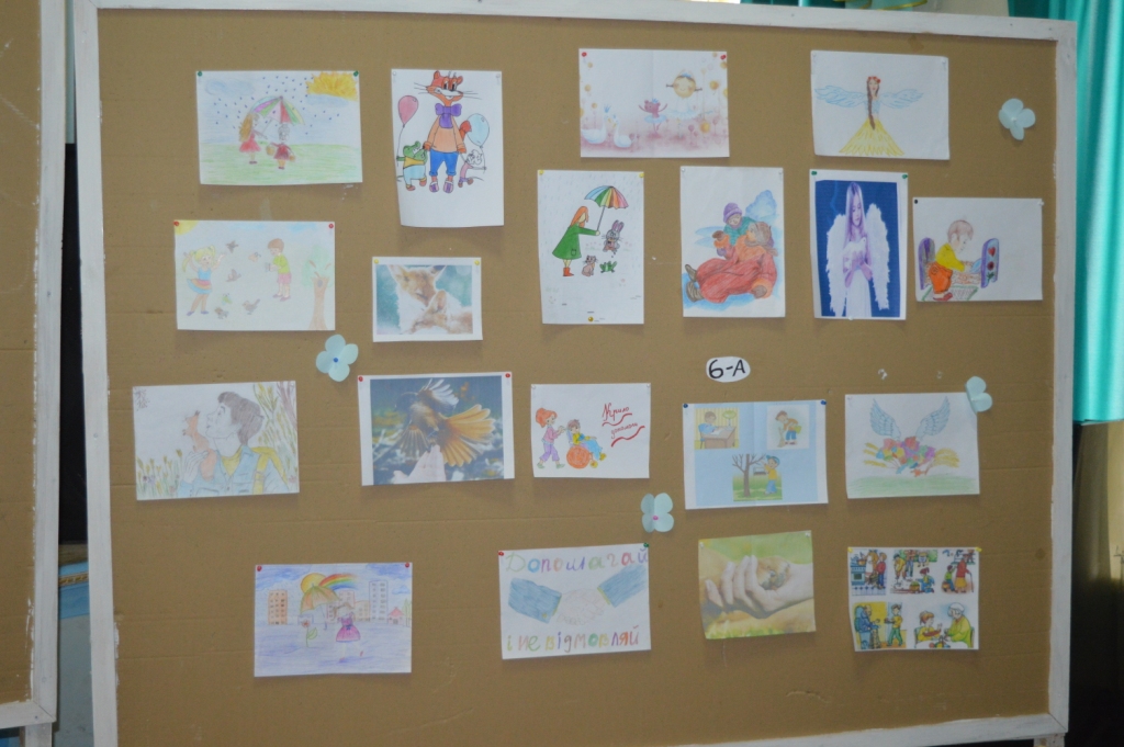 Діти 6-их класів розповіли про проведену роботу по допомозі зимуючим птахам, мешканцям міні-зоопарку та розповіли про акції, в яких брали участь. Перемогу здобули учні 6-Б класу (класний керівник Лосінець Марія Олександрівна, староста класу - Деркач Софія). Діти розповіли про воїнів АТО, які проживають у Володимирці, про цікаві зустрічі з ними та презентували посібник про наших захисників. Друге місце розділили учні 6-А класу (класний керівник Подерня І.А., староста класу – Зуєвич Ольга) та учні 6-В класу (класний керівник Бортник О.К., староста класу - Ковенько Олександр).