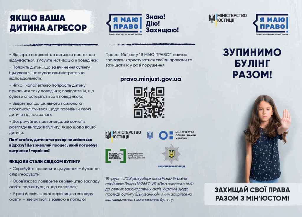 • Якщо булінг вчинено групою осіб або повторно протягом року після накладення адміністративного стягнення, штраф буде більшим — від 100 до 200 мінімумів (1700 - 3400 гривень) або громадські роботи на строк від 40 до 60 годин.