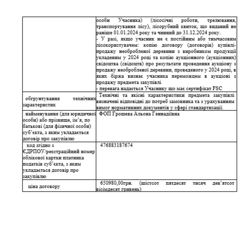 Закупівля ДК 021:2015 – 03410000-7 Деревина (деревина дровяна непромислового використання)