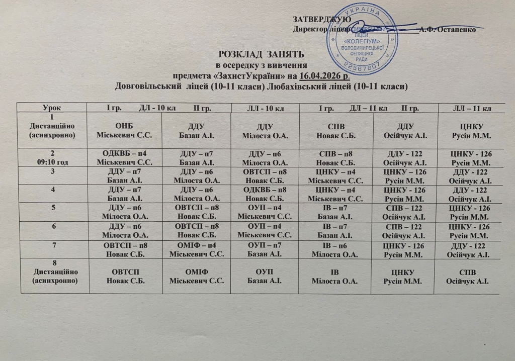 Розклад навчальних занять на 16.04.2026