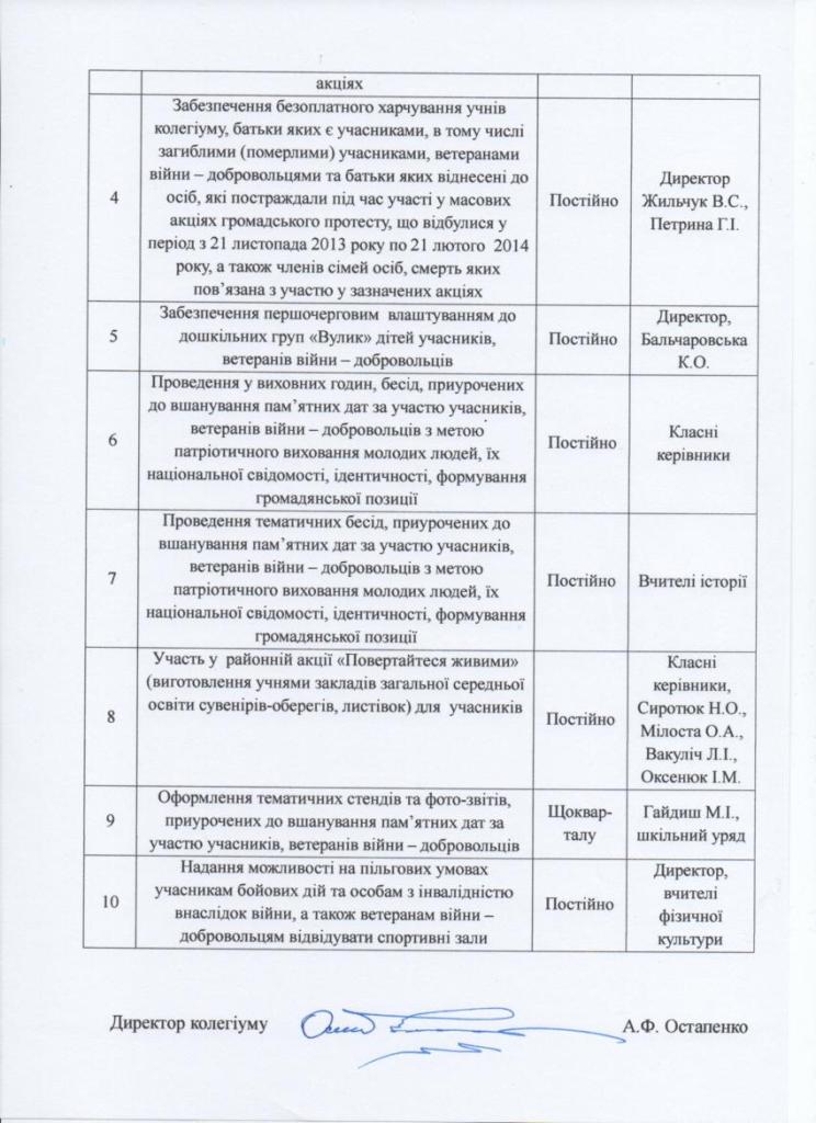 План заходів, спрямованих на запобігання та протидію булінгу (цькуванню) в закладі освіти
