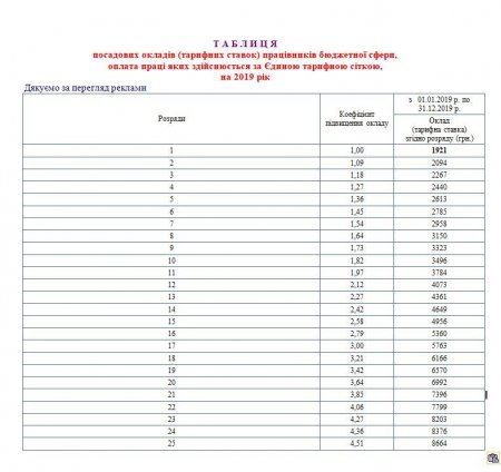 Посадовий оклад (ставка) працівника І тарифного розряду |