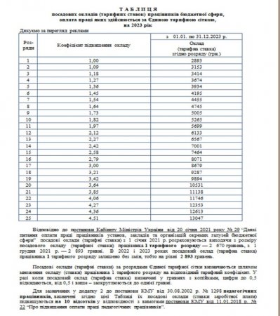 Посадовий оклад (тарифна ставка), (грн з округленням) |